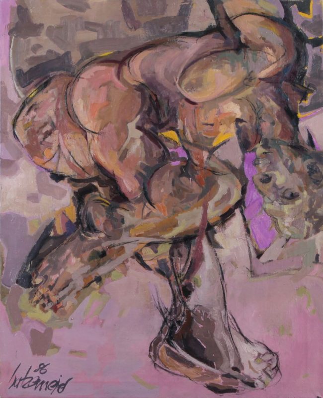 Ein politisches Bild in Reaktion auf die Implosion der DDR und den kritiklosen Anschluss Ostdeutschlands an die BRD. Waldeslust | 1990 | Öl auf Leinwand | 170 x 200 cm Das Bild Waldeslust ist eine schonungslose Abrechnung mit der „Wiedervereinigung“, dem Zusammenfall der DDR und der damit einhergehenden kollektiven Verdrängung der Vergangenheit. Destruktiv und, entgegen…